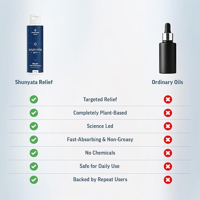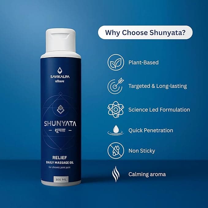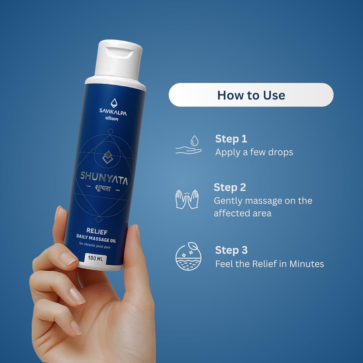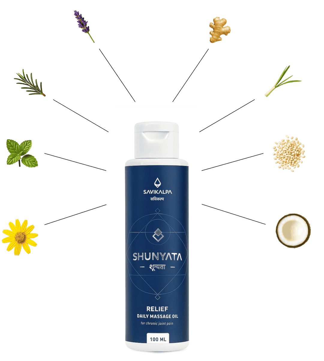 Shunyata Relief is a polyherbal medicated massage oil for relief from chronic musculoskeletal pains.